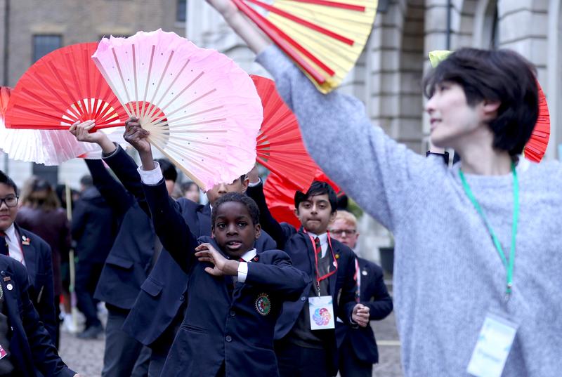 Para tamu menghadiri peluncuran seri buku 'China Perspective' dalam ajang London Book Fair di London, Inggris, pada 12 Maret 2024. London Book Fair, salah satu pameran buku terbesar di dunia, resmi dibuka pada Selasa (12/3). Dalam pameran tersebut, para pelaku industri penerbitan menyerukan kolaborasi yang lebih besar antara penerbit China dan penerbit internasional. (Xinhua/Li Ying)